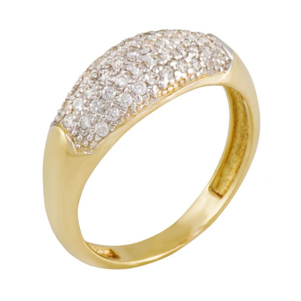 טבעת זהב צהוב 14K קמורה משובצת זירקונים לבנים