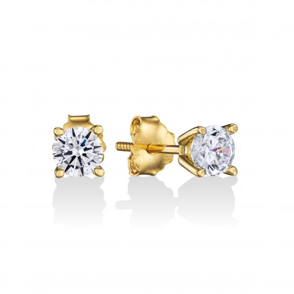 זוג עגילי זהב 14K צמודים משובצים אבן זירקון לבנה בשיבוץ שיניים