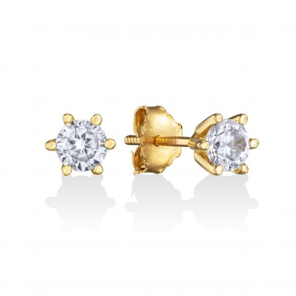 זוג עגילי זהב 14K צמודים משובצים אבן זירקון לבנה בשיבוץ שיניים