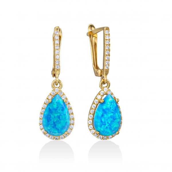 זוג עגילי זהב 14K תלויים משובצים אבן מרכזית בצורת מרקיזה בצבע לבחירת לקוח בשיבוץ אבני זירקון לבנות סביב גם התלי משובץ אבני זירקון לבנות