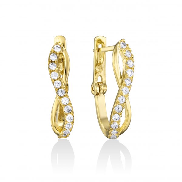 זוג עגילי זהב 14K בננה בצורת אינפיניטי משובצים אבני זירקון לבנות