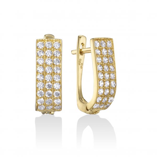 זוג עגילי זהב 14K בננה בשיבוץ שלוש שורות אבני זירקון לבנות