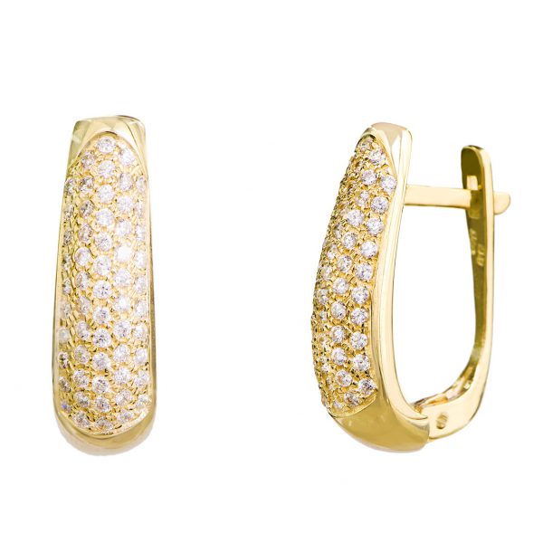 זוג עגילי בנננה עשויית זהב צהוב 14K משובצות שלוש שורות זירקונים לבנים