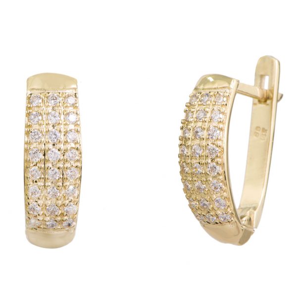 זוג עגילי בננה אלגנטיים עשויים זהב צהוב 14 קראט בשיבוץ אבני זירקון לבנות