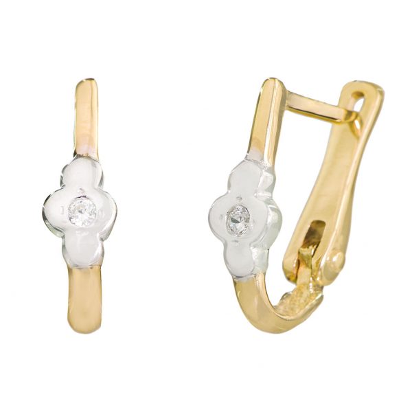 זוג עגילי בננות עשויים זהב צהוב 14K בשילוב זהב לבן 14K בשיבוץ זירקון מרכזי