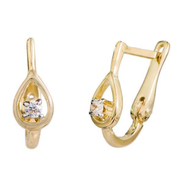 זוג עגילי בננות עשויים זהב צהוב 14K בשיבוץ זירקון מרכזי