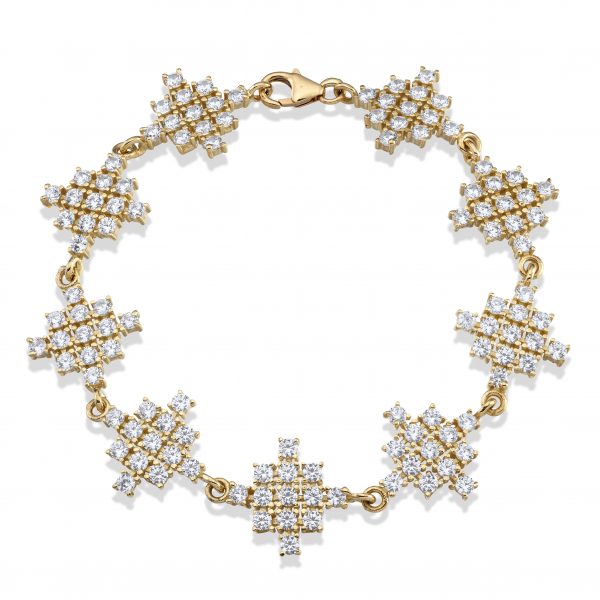 צמיד זהב 14K עשוי חוליות בצורת מעויין משובץ אבני גראנט אדומות או אבני זירקון לבנות לבחירת הלקוח